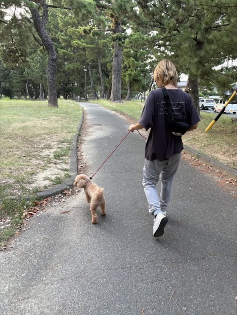 レイくんとのお散歩は穏やかで私も景色を楽しむ余裕がありました☺️❣️時々「座れ」のコマンドも出して頭も使いながら楽しくお散歩できました🦮💕コミュニケーションも紳士的なレイくんでした✨