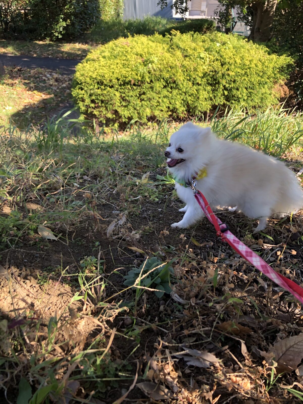 風が強い日でしたが、そんなのおかまいなし。落ち葉をかしゃかしゃ踏んで得意げな顔で歩いてました、可愛いなー