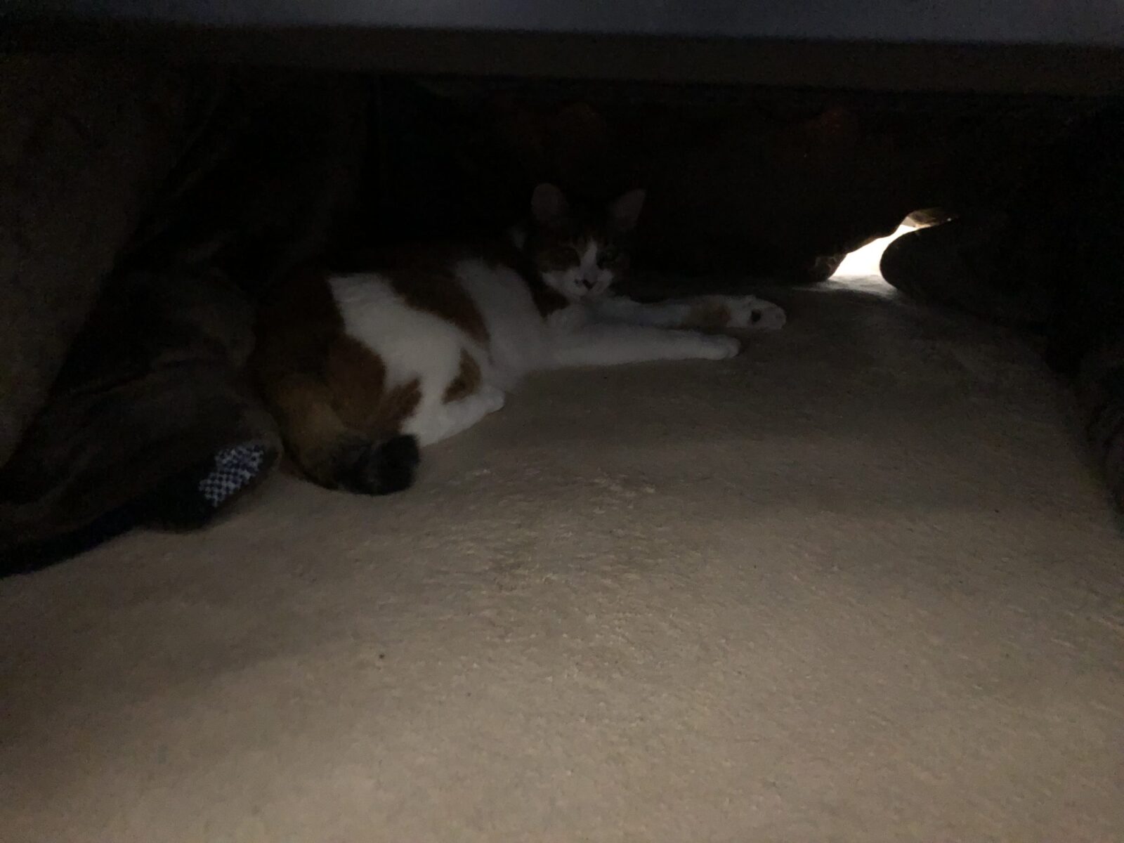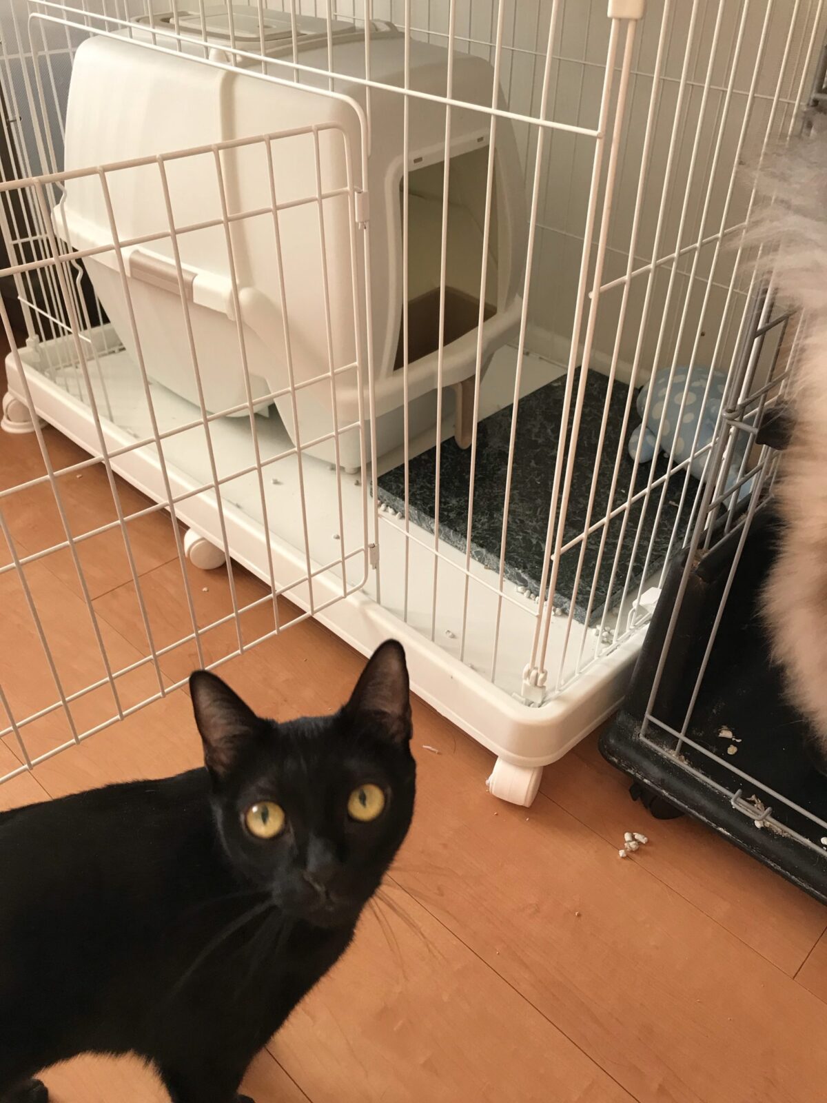 かまってほしいけど警戒気味のめーうーちゃん、でもずっと近くにいます笑