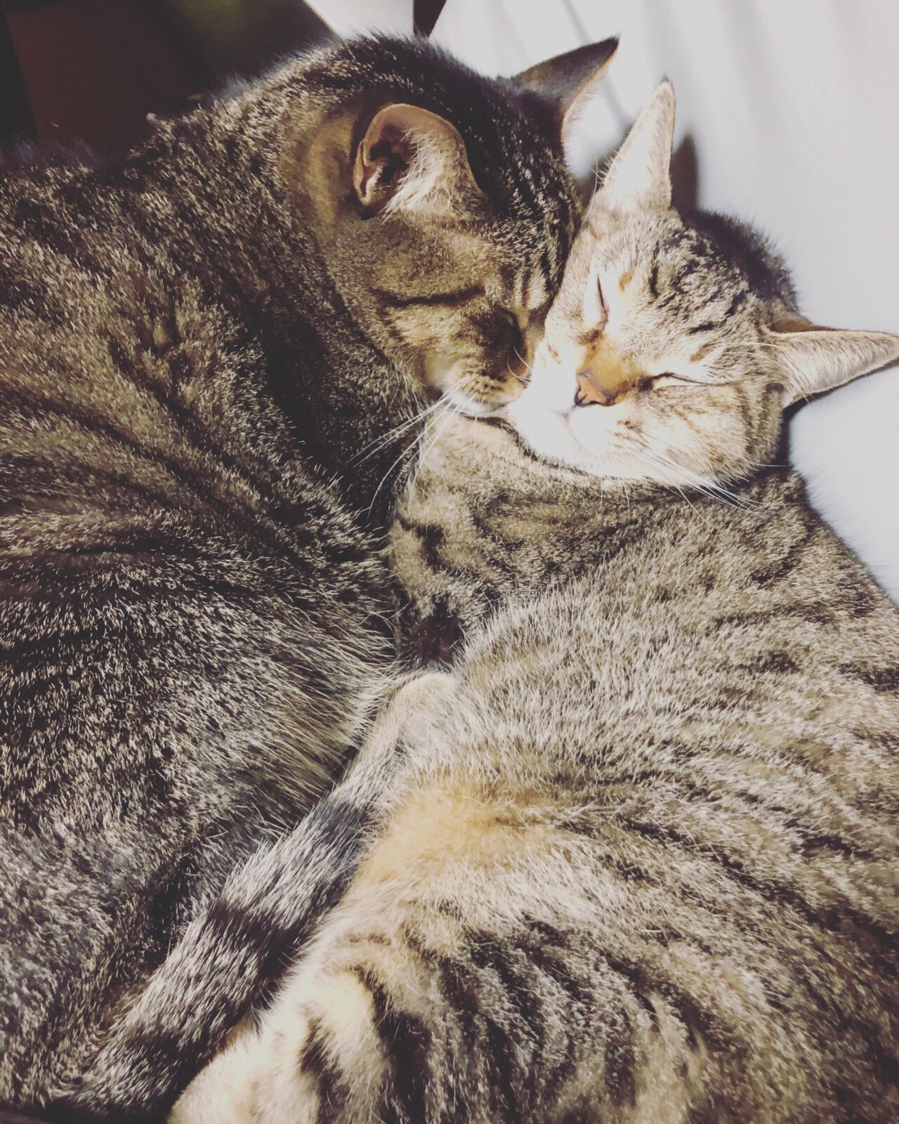 保護猫ちゃんで、兄弟で一緒に家族として迎えたそうです。ずっと仲良しの2匹です。