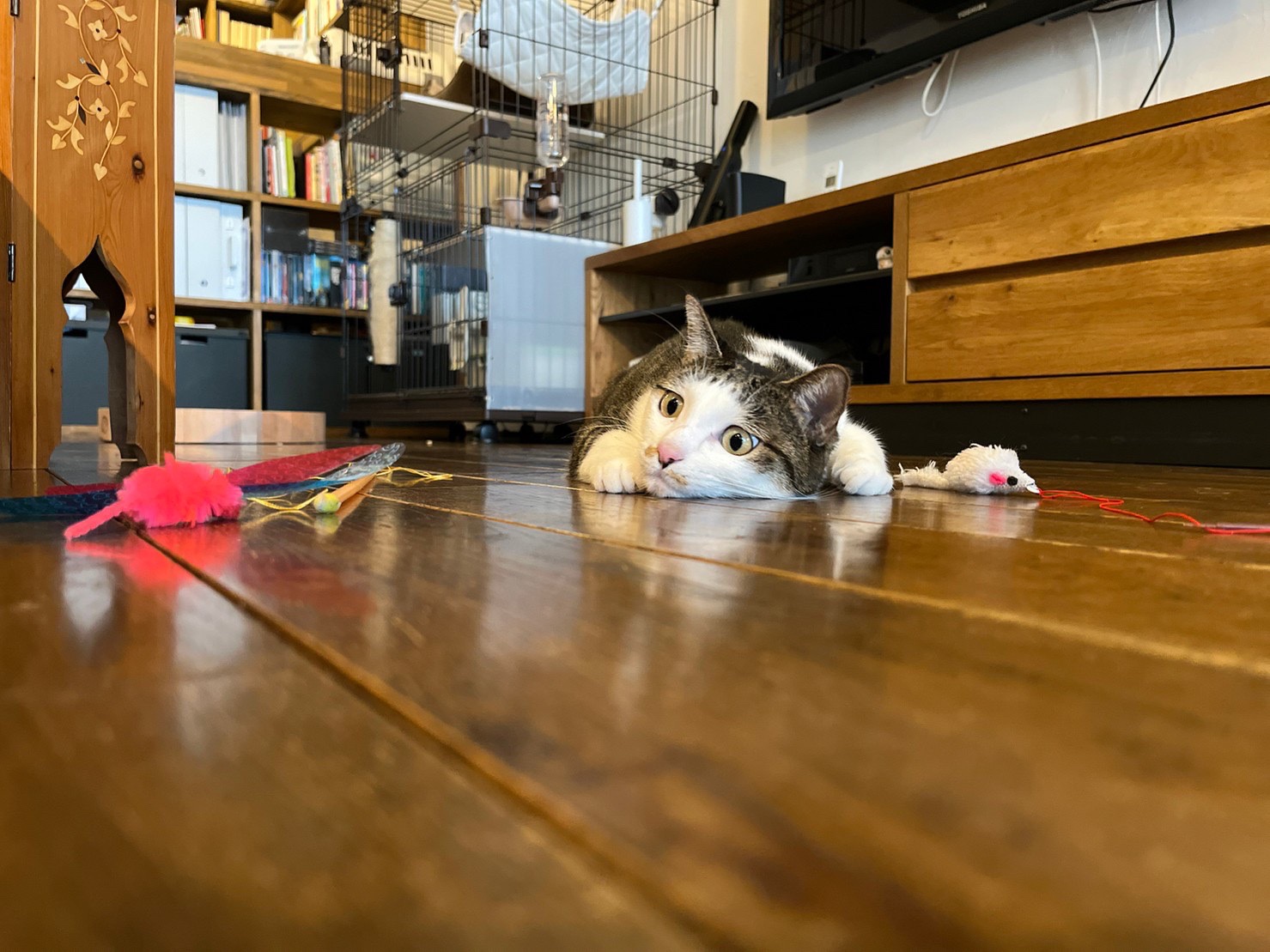少し警戒していたMちゃん、さすが若者!!チュールと猫じゃらしで、すぐ慣れてくれました☺️しばらくぶりにお世話に行っても、覚えてくれているMちゃん、沢山遊んでくれてありがとう♡目力強め😻
