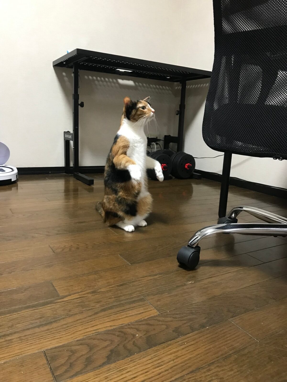 若いので、段々と好奇心が🤩猫じゃらしとチュールで徐々に地上に降りてきてくれるようになりました☺️たまにミーアキャットみたいなHちゃん、可愛さをありがとう♡