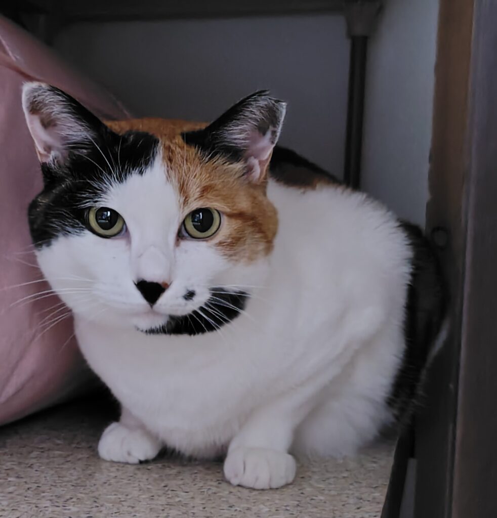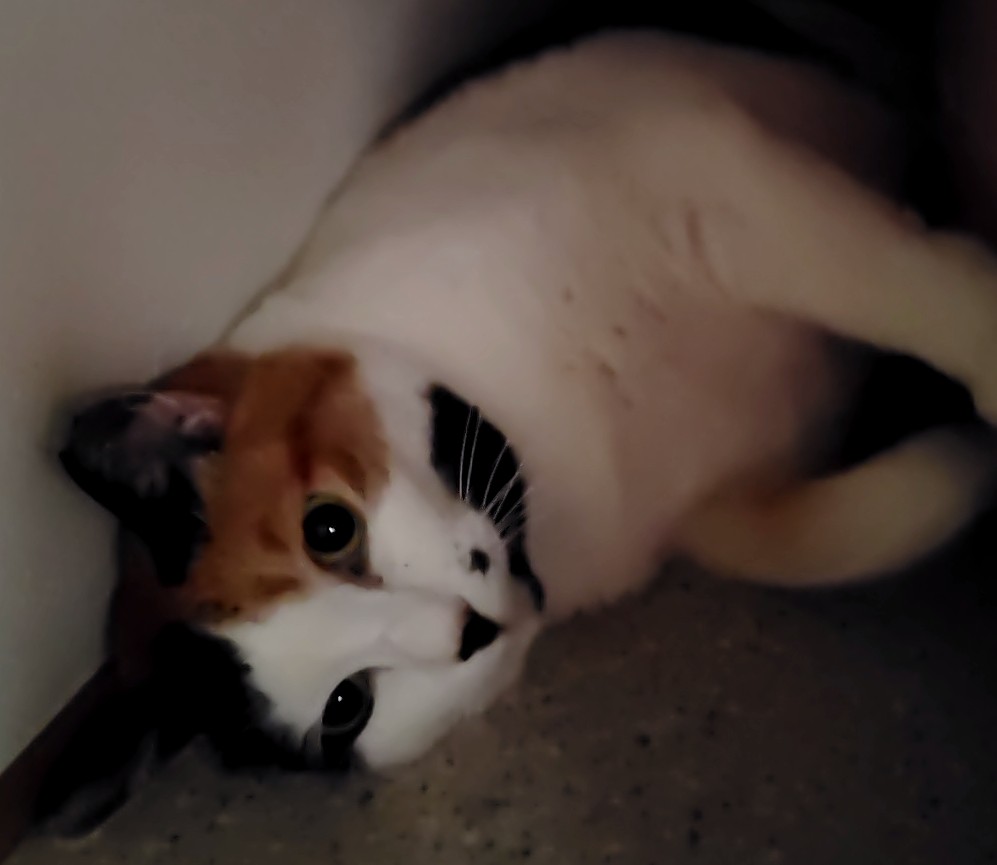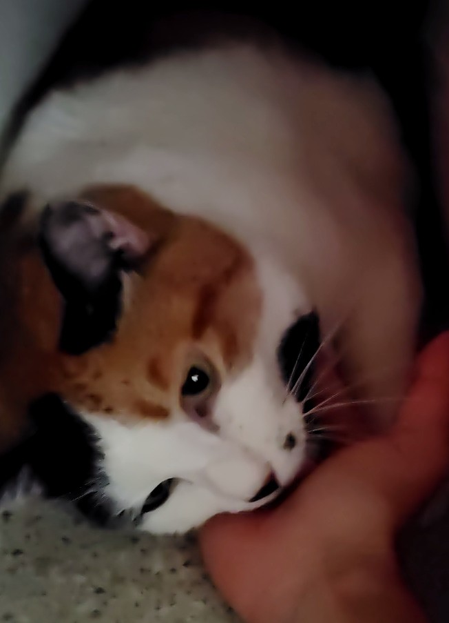ママしか懐いていないミケコちゃんでしたが、段々慣れてきてくれて手からチュールも食べてくれる様になり、ナデナデもさせてくれる様になりました😊