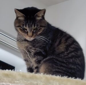 ママじゃないと気付いてからはいつものキャットタワーの上から覗いてます😊