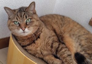 落ち着いたあとは、爪とぎボールの中でリラックス😊