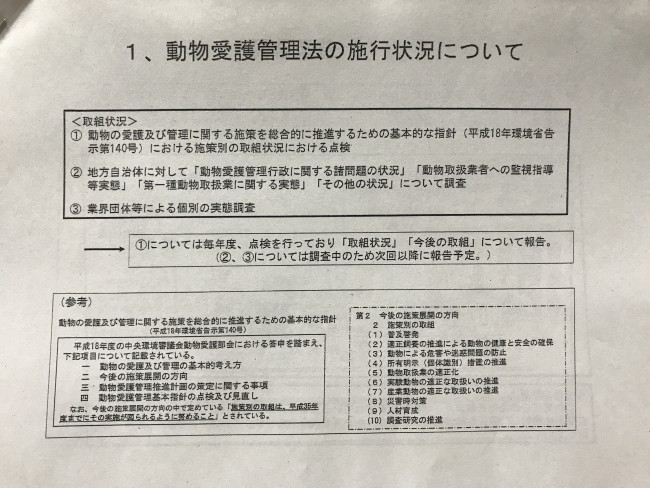 動物愛護管理法っていうのがありまして、大阪府動物愛護管理センターの方が、今年は動物愛護週間にこんな事をしました、とか終生飼育や適切な繁殖制限措置の普及強化をこれからもしていきます。などのお話がありました。