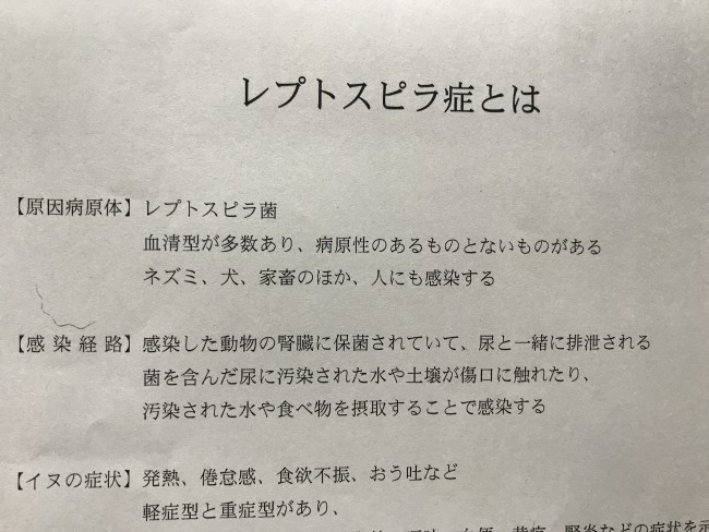 その他に今年はレストスピラ症が例年より多く発症しているので気を付けましょう。