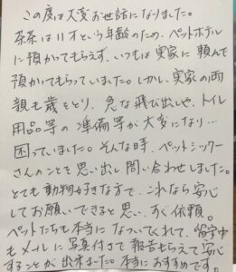 茶茶ちゃんとチビ太ちゃんのご家族様からアンケートのハガキが届きました。ありがとうございます。今後ともよろしくお願いいたします。