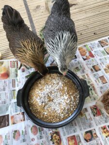 鶏ちゃんたちは納豆が大好きです。成鶏たちは1.5パック子鶏たちは0.5パック食べます。卵をちゃんと産むためにも納豆は必需品だそうです。