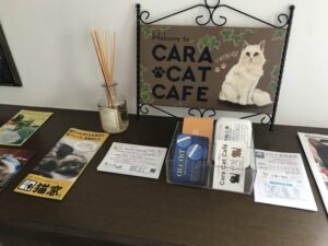 箕面駅前にある保護猫カフェCara Cat Cafeさんにチラシを置かせていただきました 🙂
