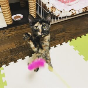 1泊2日でサビ猫のこはるちゃんをお預かりしました🐱こはるちゃんは産まれてまだ三ヵ月です。飼い主様のお庭で産まれました。産まれた次の日にお母さん猫はこはるちゃんを置いてどこかに行ってしまったそうです。飼い主様は保護し家族にお迎えされました。ちょっと怖がりですが、好奇心旺盛なこはるちゃん。来月また会える事が決まっています💓