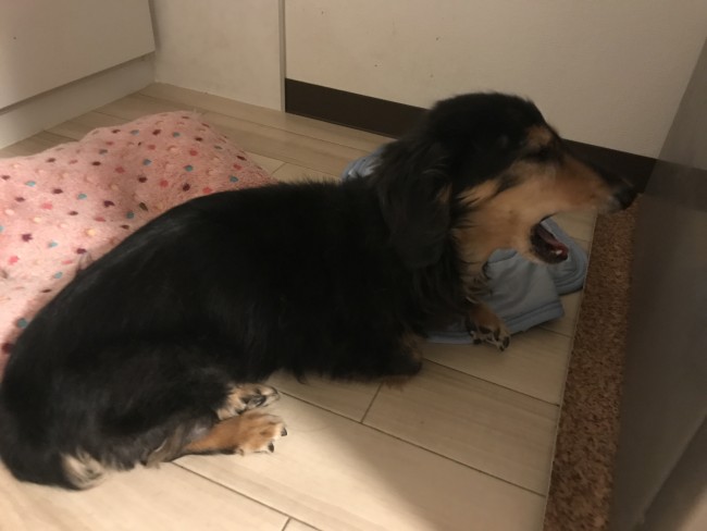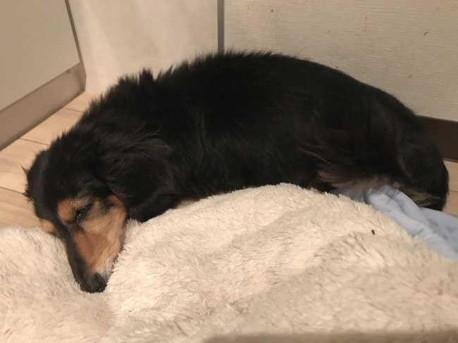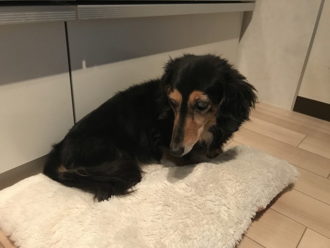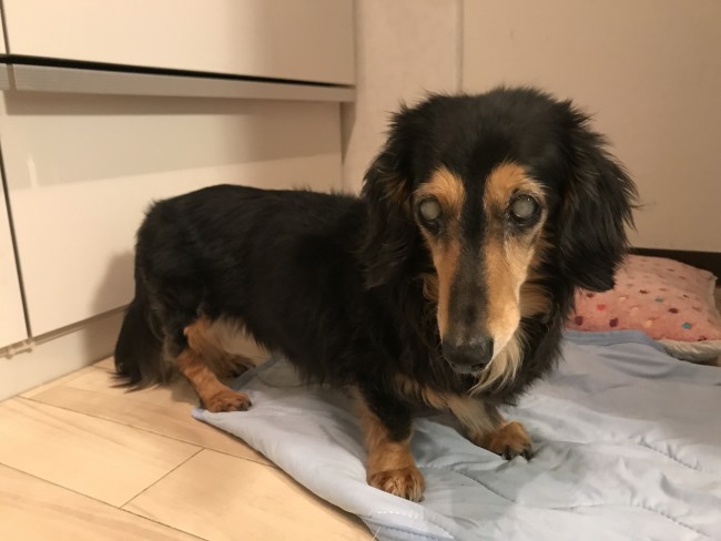 今回のお世話は豊中にお住まいのダックスフンドのイヴちゃんです。イヴちゃんは17歳、人間で言うと84歳のおばぁちゃんです。目もあまりよく見えていません、足もヨタヨタです。でも、ご飯の用意をして床に置くと、鋭い嗅覚でトコトコ歩いてきます。 お部屋の端っこにいてもトコトコきます。 かわいいです💓 お歳なので、ほとんどの時間寝てます。 内臓はまだまだ元気!!食欲旺盛のイヴちゃんもっともっと長生きして、また会えますように。