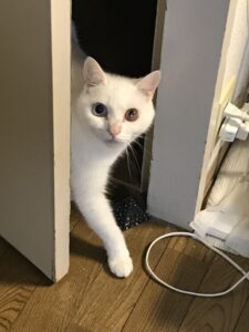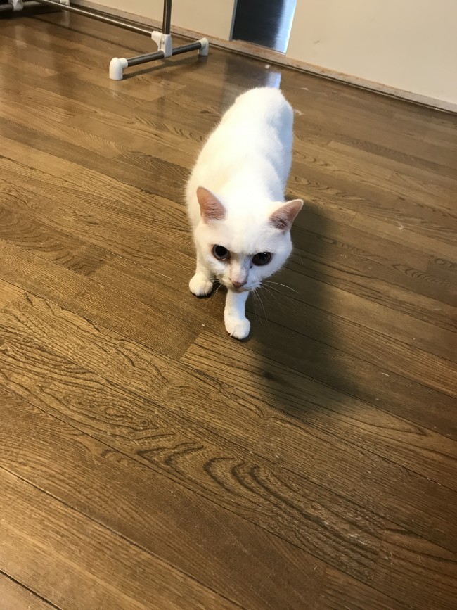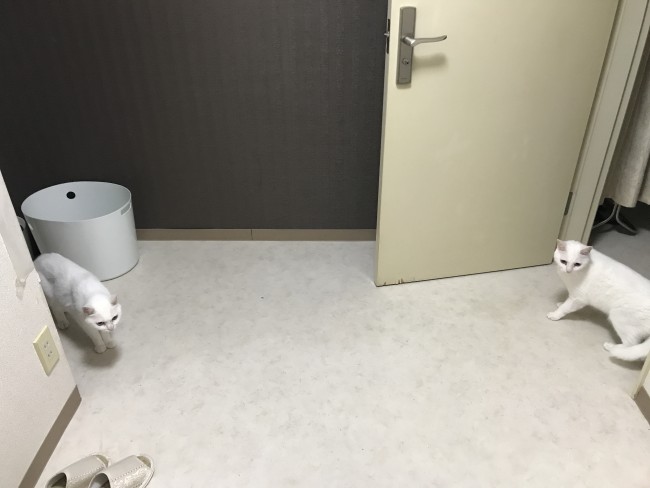 今回のお世話は箕面にお住いの白猫、ミミくんとユキちゃんですミミくんもユキちゃんも保護猫出身です。ミミくんです。好奇心旺盛でご飯の用意などウロウロしていても振り返ったらいます。 ユキちゃんです。とっても怖がりさん。でも隠れるわけではなく遠くから気配を消して見てます。 シッターがいる間にユキちゃんはご飯を食べに来てはくれませんでしたが、ミミくんはご飯が出てくるのを待ってます😺帰るときにはお見送りしてくれました。ミミくんとユキちゃんにまた会えますように。