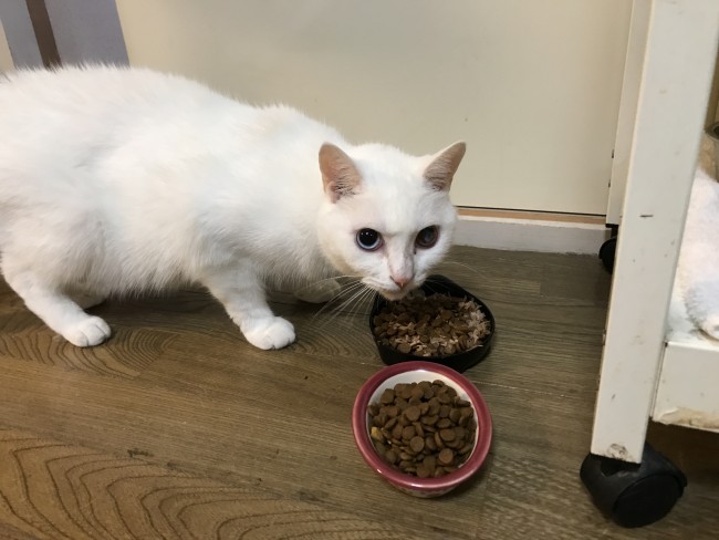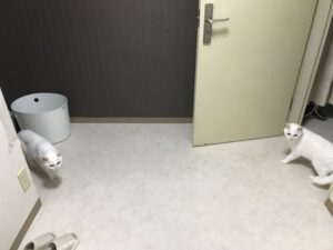 今回のお世話は箕面にお住いの白猫、ミミくんとユキちゃんです