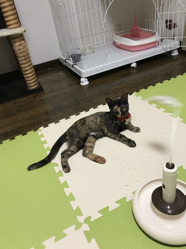 サビ猫のこはるちゃんがまたお泊りに来てくれました。 だいぶ慣れてきました。 猫じゃらしも大好きです💓小っちゃい体で果敢に挑んでいきます。でもまだ赤ちゃん…ちょっと疲れたね。また近いうちにお預かりが決まっているこはるちゃん。次は一週間とちょっと長めです。でも、もう慣れてるから大丈夫だね 🙂お迎えのときに飼い主様からお土産を頂いてしまいました。ありがとうございます。