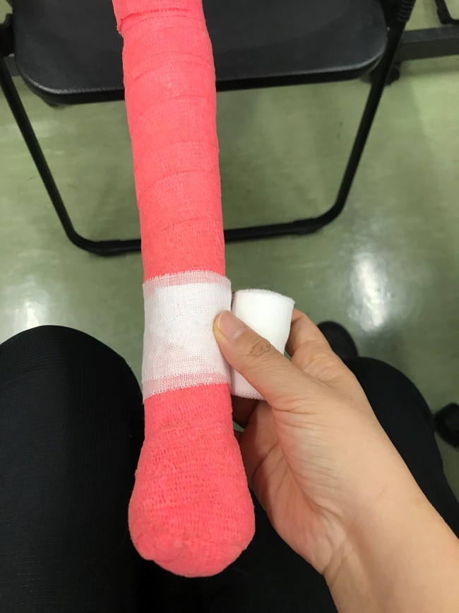 先生がおっしゃるには昔からある伸びない普通の包帯が動物には一番いいそうです。