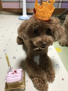 トイプードルのローズちゃんはお預かりしている間に10歳の誕生日を迎えました。ささやかながらパーティをしました。