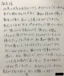 リキくんとひかりまるくんとまるこちゃんのご家族様からアンケートのハガキが届きました。ありがとうございます。今後ともよろしくお願い致します。