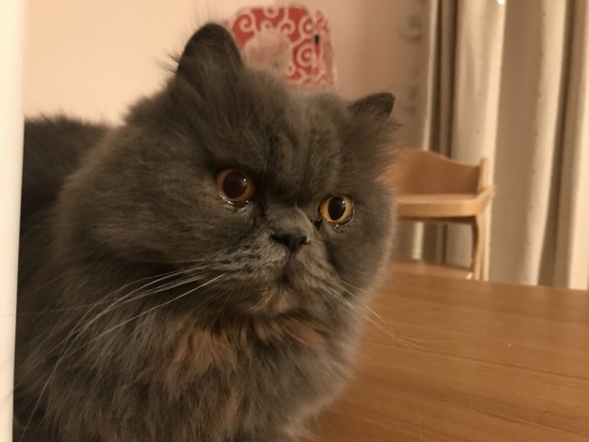 今回のお世話は吹田市にお住いのエキゾチックショートヘアのタロウくんです。とってもキレイなお顔ですね。元気一杯の3歳です😺お部屋に入ったらボーっとしてました(笑)寝てたんだね~ 🙂とっても人懐っこいタロウくん。またタロウくんに会えますように。