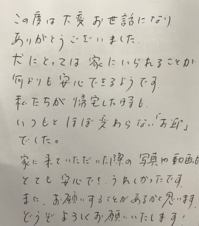 かりんちゃんのご家族様からアンケートのハガキが届きました。ありがとうございます。今後ともよろしくお願い致します。