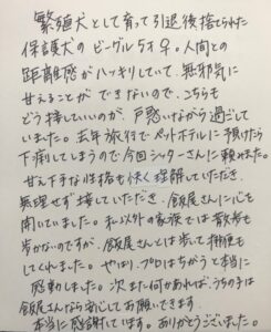 つくねちゃんのご家族様からアンケートのハガキが届きました。