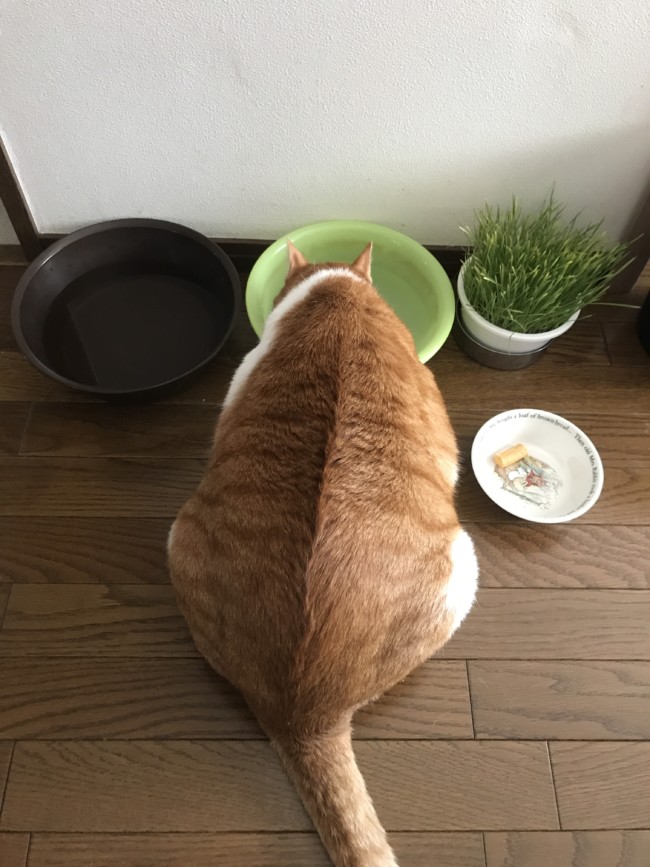 お水も洗面器で飲んでいます😺