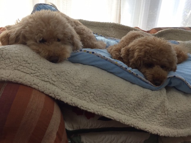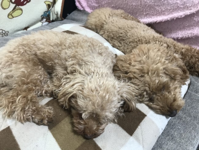 うちの犬嫌いのももが一緒に寝てます!!凄い事なんですよ~ 🙂