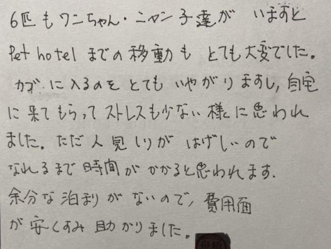 ペットホテル 猫のメイちゃんのご家族様