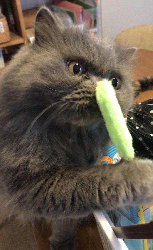 猫じゃらしも大好きです。シッターが持ってきた猫じゃらしが気になるみたいです。