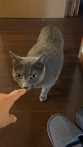 今回のお世話は箕面市にお住いのロシアンブルーのルーちゃんです。初めましての猫ちゃんです😺怖がりのルーちゃん、打ち合わせの時はベットの下に逃げてしまいちゃんとご挨拶が出来ませんでした ( ノД`)シクシク…お世話当日………😺玄関までお迎えにきてくれました!! 🙂ちゃんとご挨拶も出来ました💗ご飯の用意をしている時は、遠目にジーーーーーーっと見ていました(笑)怖がりさんが姿を見せてくれるとやっぱり嬉しいですね。ルーちゃん、また会える日を楽しみにしています 🙂
