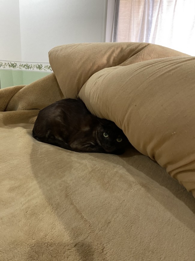 黒猫の宙くん4歳、怖がりさんです。
