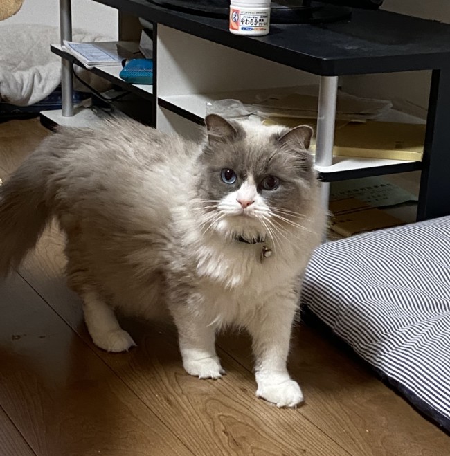 ラグドールのミルクちゃん4歳です。寄って来たり、離れたり猫っぽい子です。