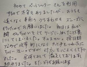 鳥羽ちゃんのご家族様からアンケートのはがきが届きました。ありがとうございます。今後ともよろしくお願い致します。