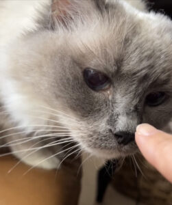 茶茶ちゃんは人見知りの猫ちゃん。シッターも5年かかってようやく鼻チョンが出来るようになりました 🙂