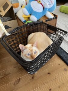 ブランくんは少し怖がりなのにカゴに入って笑わせてくれます(笑)きっとブランくんの落ち着くところなんだね~(笑)