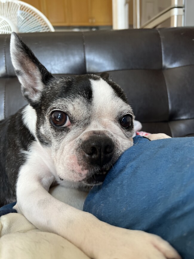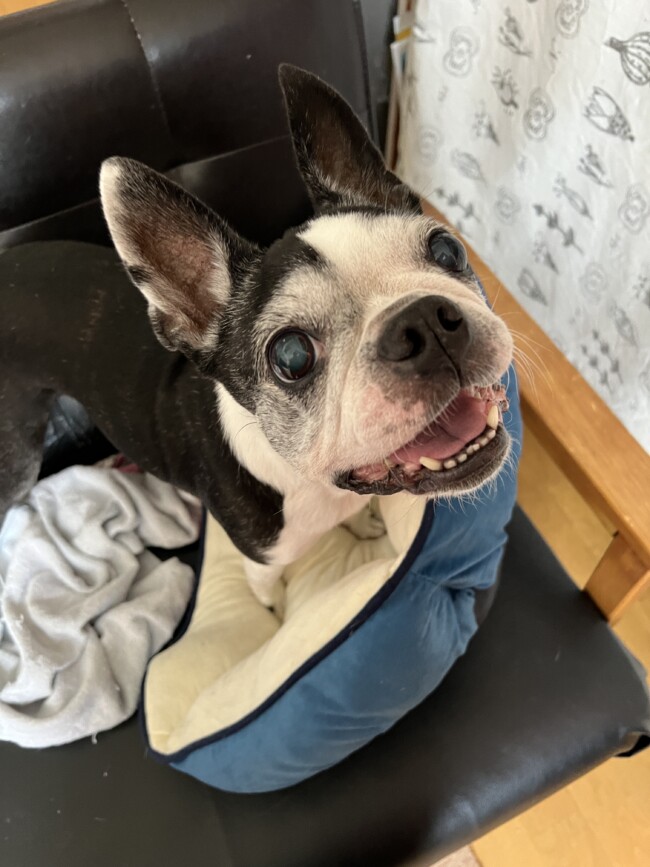 今回のお世話は箕面市にお住いのボストンテリアのベニちゃんです。