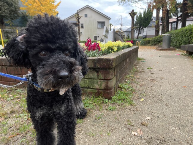 今回のお世話は箕面市にお住いのトイプードルむさしくんです。初めましてのワンちゃんです🐕むさしくんは8歳の男の子とっても人懐っこいわんちゃんです💓おやつをくわえてとても良い笑顔 🙂お散歩も大好き🐕花壇をバックに写真を一枚(笑)とっても明るくでかわいいむさしくんでした💓