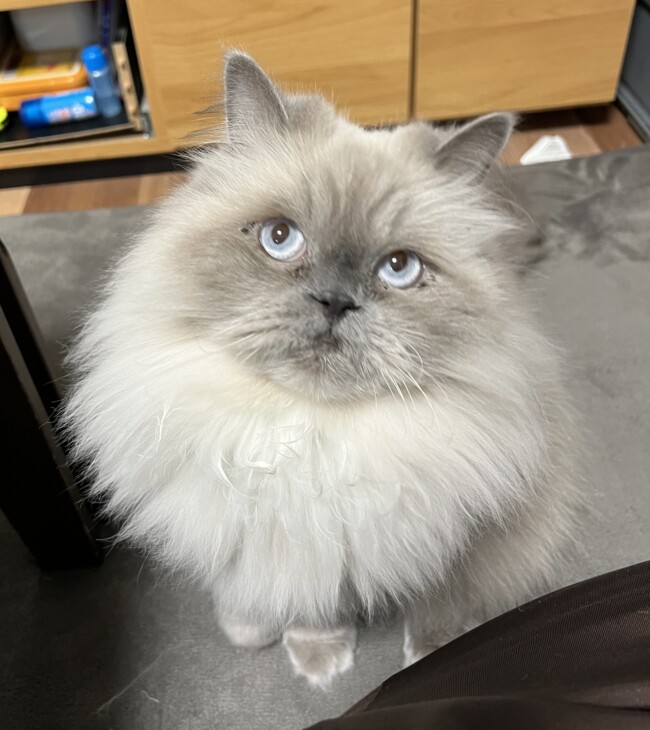 今回のお世話は吹田市にお住いのブリティッシュショートヘアのももちゃんとヒマラヤンのたろうくんです。