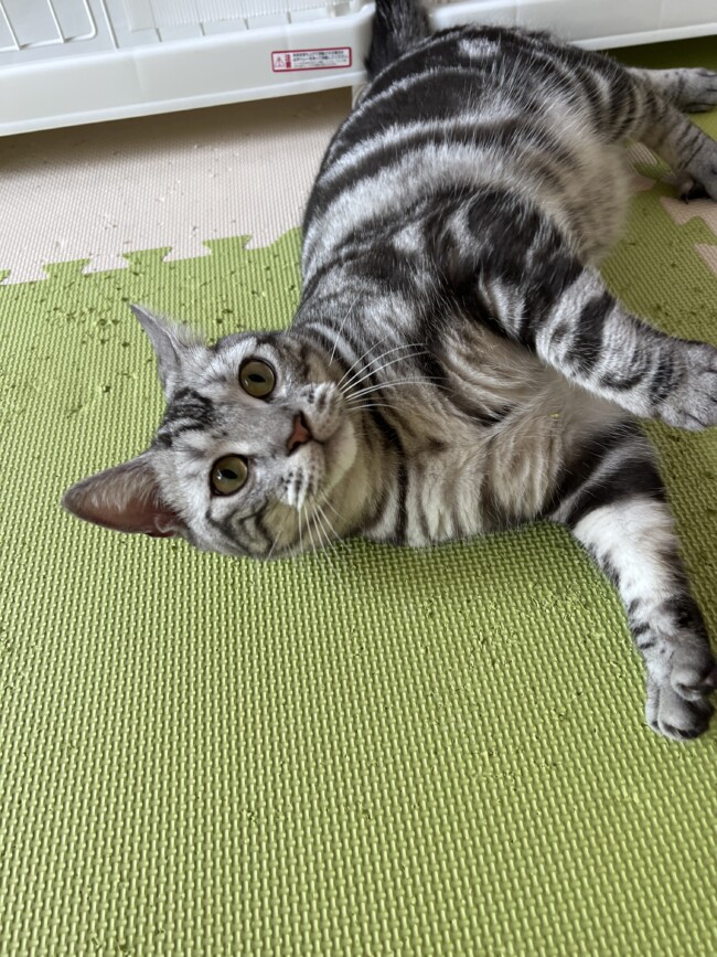 ペットホテルでアメリカンショートヘアのみろくくんをお預かりしました。初めましての猫ちゃんです😻みろくくんは1歳の男の子です😸初めは緊張気味だったみろくくんでしたが、ちょっとずつ慣れてくれました 🙂猫じゃらしでも遊んでくれました。ゴロゴロ出来たらホテルもストレスなしですね💓みろくくんにまた会える日を楽しみにしています 🙂