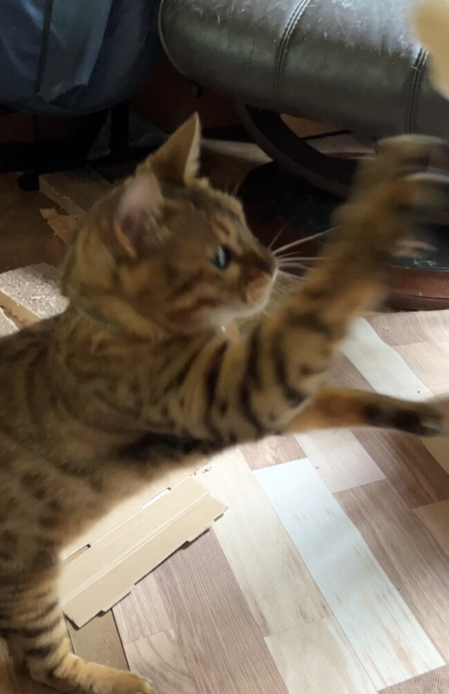 今回のお世話は箕面市にお住いのベンガルのキーちゃんです。初めましての猫ちゃんです😻キーちゃんは6歳の女の子とっても元気で人懐っこい猫ちゃんです🐈ご飯もおやつも大好き💕疲れることを知らないキーちゃんです(笑)元気いっぱいのキーちゃん、また一緒に遊ぼうね~ 🙂