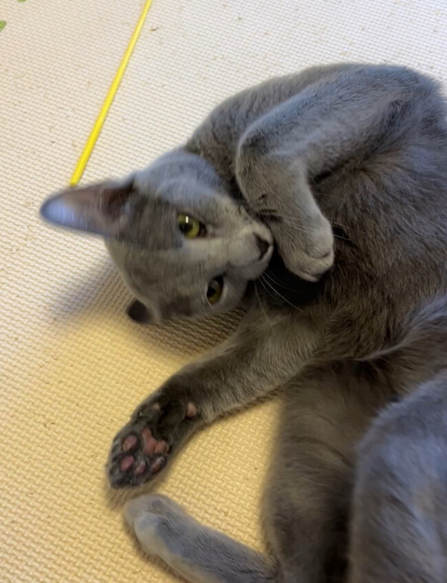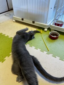 ペットホテルでロシアンブルーのルルくんをお預かりしました。初めましての猫ちゃんです😻ルルくんはまだ8ヶ月のパピーちゃん最初は怖がってケージから出て来ませんでした。でもしばらくすると慣れてくれてケージから出れるようになり、、、大きな伸び~もしてくれるようになりました😻猫じゃらしでも遊んでくれましたよ 🙂とってもかわいいルルくんでした💓