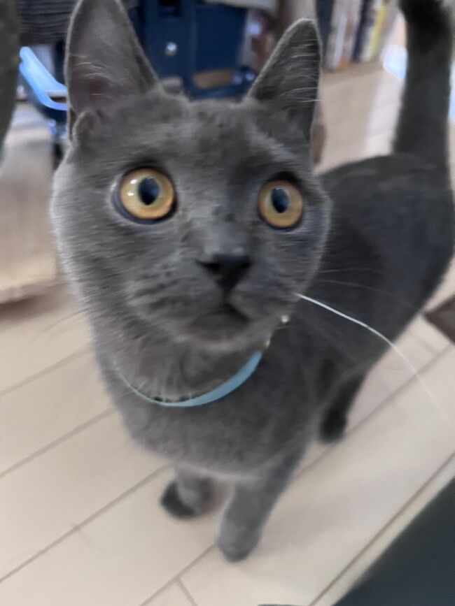 シャルトリューはフランス原産なのでフランス語の名前を付けたいと、、、ちょうど紫陽花が咲く頃にお家にお迎えされたそうで、オルタンシアはフランス語で紫陽花という意味だそうです。なるほど、、、一つフランス語を覚えました(笑)