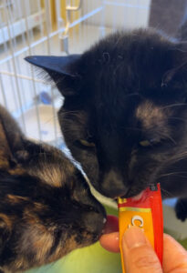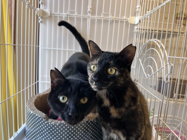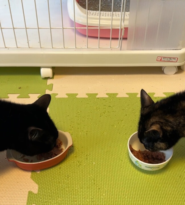 ペットホテルで猫のくーくんとちーちゃんをお預かりしました。初めましての猫ちゃんです😻左の黒猫がくーくん 1歳の男の子右のサビ猫がちーちゃん 8か月の女の子初めは耳もペチャンコで怖がっていましたが、ちょっとずつ慣れてくれて猫じゃらしでも遊んでくれるようになりました 🙂ご飯も仲良く一緒に💕6日間と少し長いお留守番でしたがくーくん、ちーちゃん頑張ってくれましたまた会える日を楽しみにしています 🙂