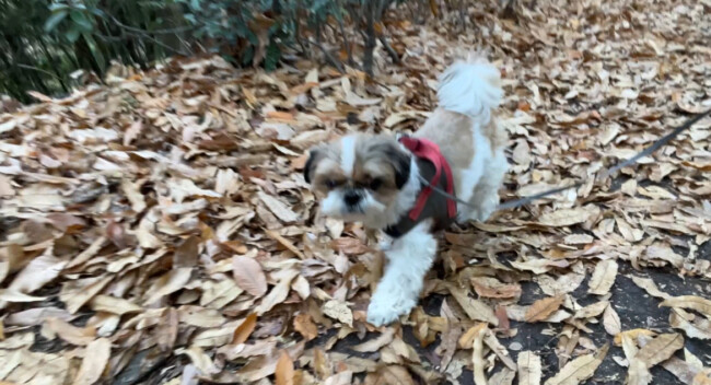ゆきちくんお散歩に出発です💕のんびり、ゆっくり歩きます 🙂