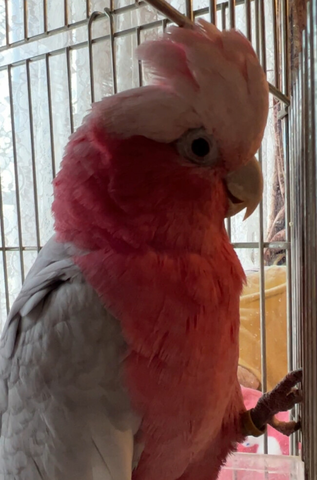 冠羽がボワーっと立っています。ご機嫌なのかシッターが近寄って怒っているのか、、、鳥ちゃんは感情が豊かですね