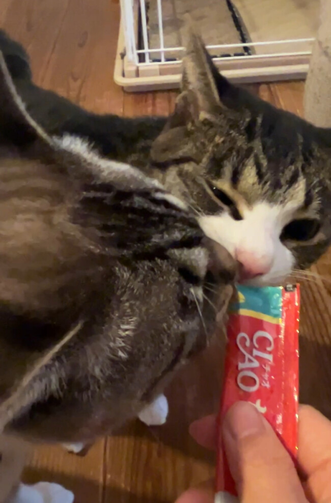 ちょっとずつ回数を重ねて寄って来てくれて、ちゅーるも食べてくれるようになりました 🙂
