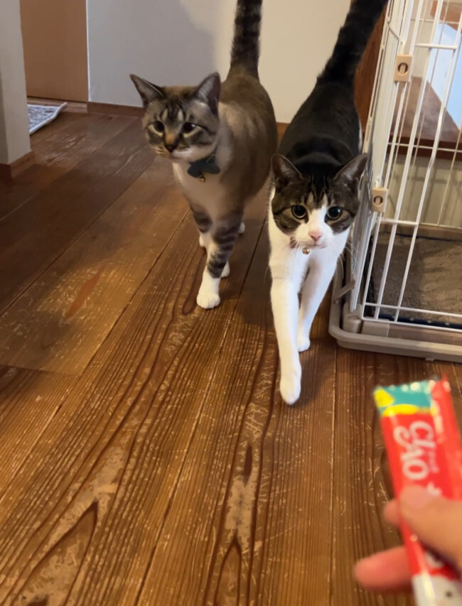 今回のお世話は吹田市にお住いの猫のいねくんとむぎちゃんです何度もご利用いただいている猫ちゃんです😻左がいねくん 右がむぎちゃん どちらも2歳です💕いねくんとむぎちゃんは人見知りで最初は逃げてなかなか姿を見せてくれませんでしたちょっとずつ回数を重ねて寄って来てくれて、ちゅーるも食べてくれるようになりました 🙂猫じゃらしも大好き💕どんどん慣れてくれたいねくんとむぎちゃん、また会える日を楽しみにしております