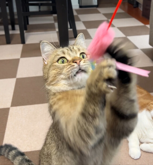 今回のお世話は吹田市にお住いのミヌエットの虎太郎くんとスコティッシュフォールドの花ちゃんです何度もご利用いただいている猫ちゃんです😻虎太郎くん3歳の男の子花ちゃん2歳の女の子虎太郎くんと花ちゃんは人懐っこくてとっても元気 🙂少し人見知りだった花ちゃんも今ではすっかりゴロゴロちゃんです(笑)猫じゃらしも大好き💕楽しそうです(笑)とっても可愛い虎太郎くんと花ちゃんでした 🙂