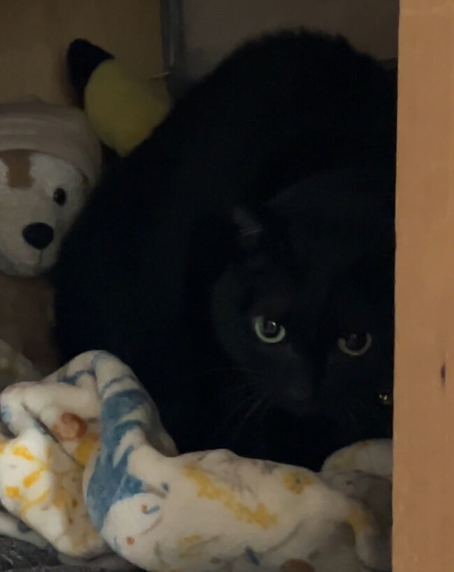 押し入れに入って怖がっているので、そんな時はソッとして帰ります。ストレスは最小限に、、、です