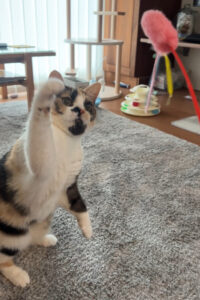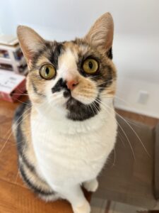 今回のお世話は箕面市にお住いの三毛猫のまめちゃんです